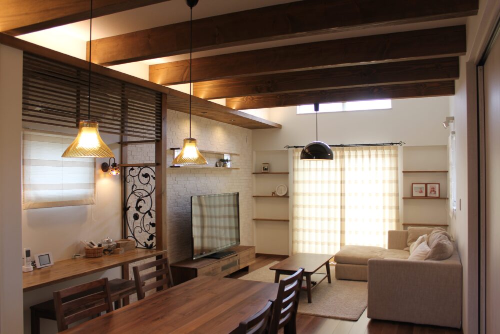 リビング続きの和室はL型建具を配置